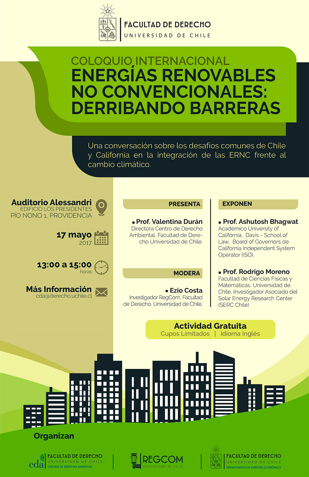 La actividad es organizada por el Centro de Derecho Ambiental (CDA), el Centro de Regulación y Competencia (Regcom) y el Departamento de Derecho Económico.