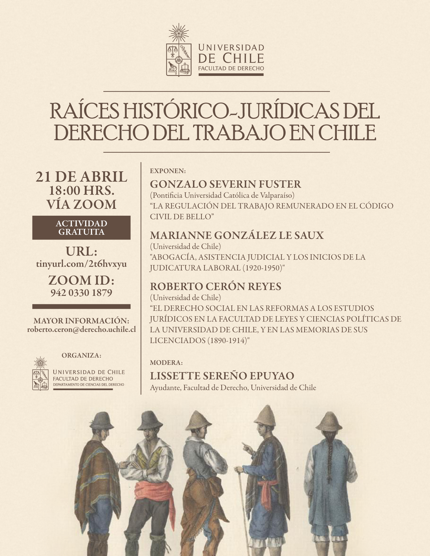 Actividad gratuita - URL de acceso: https://tinyurl.com/2t6hvxyu - ID Zoom: 942 0330 1879 - Mayor información: roberto.ceron@derecho.uchile.cl