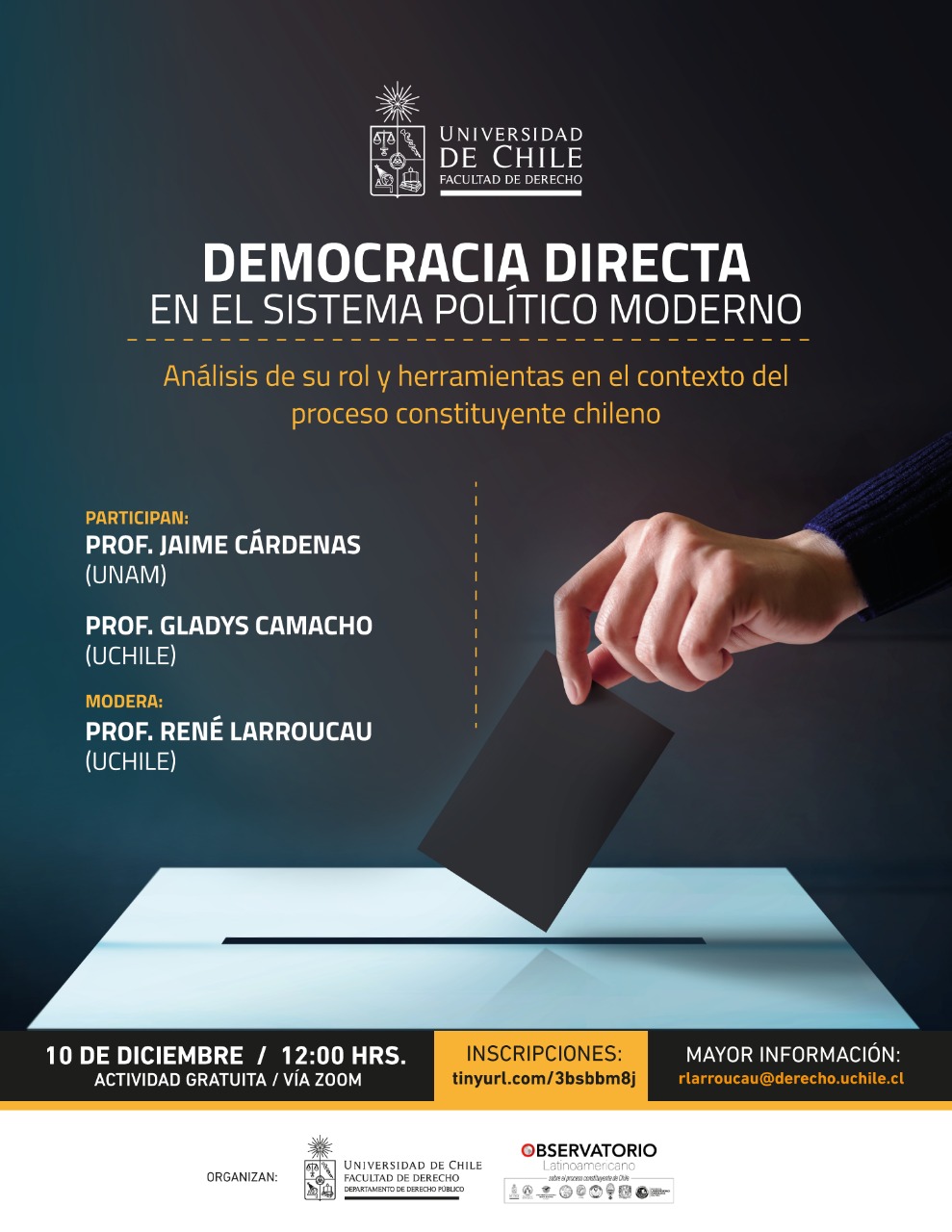 Vía Zoom - Inscripciones: https://tinyurl.com/3bsbbm8j - Mayor información: rlarroucau@derecho.uchile.cl