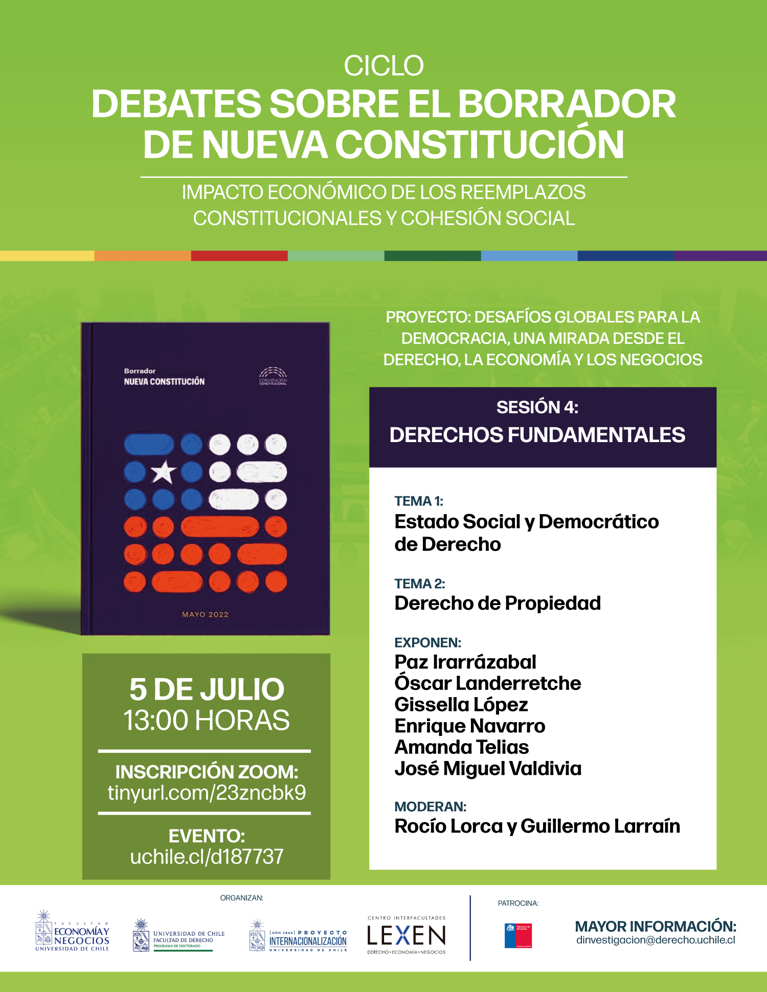 Inscripción online para Zoom: https://tinyurl.com/23zncbk9 - Mayor información: dinvestigacion@derecho.uchile.cl