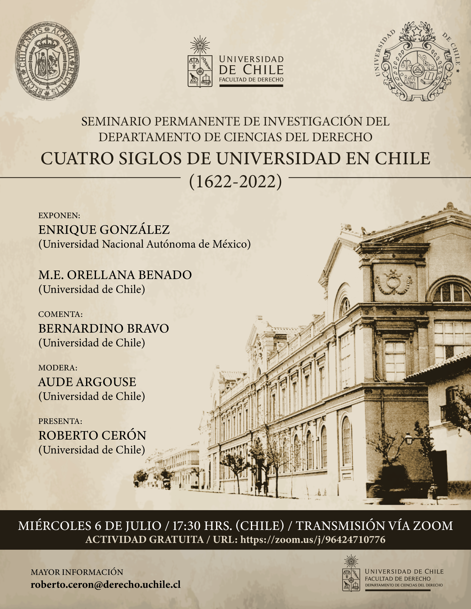 Seminario Permanente de Investigación del Departamento de Ciencias del Derecho: "Cuatro siglos de Universidad en Chile (1622-2022)"