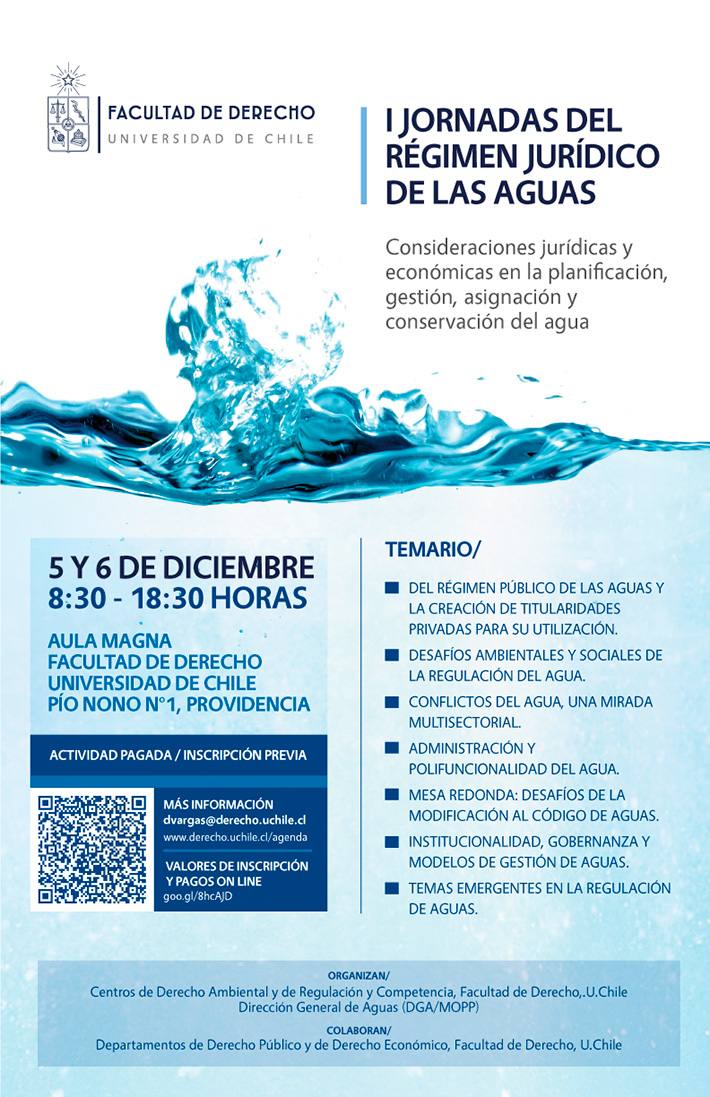 (Pío Nono 1, Piso 1, Providencia, Santiago, Chile)Invitamos a la comunidad universitaria a participar en las Jornadas de Agua, las cuales abordarán las consideraciones jurídicas y económicas en la planificación, gestión, asignación y conservación del recurso hídrico.