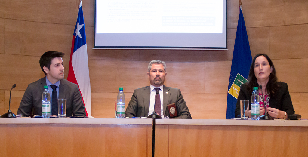 El primer panel abordó el delito de la contaminación de agua, suelo y aire, y estuvo compuesto por Jean Pierre Matus, director de Investigación de la Facultad y académico del Departamento de Derecho Penal; Paloma Infante, fiscal del Ministerio de Medio Ambiente; y Mauricio Fernández, director de la Unidad Especializada en Lavado de Dinero, Delitos Económicos, Medioambientales y Crimen Organizado (Ulddeco) de la Fiscalía de Chile.