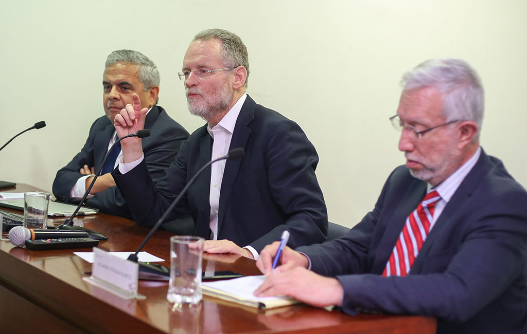 Acompañaron al profesor Valenzuela en la ceremonia, el académico del Departamento de Derecho Económico, Ricardo Escobar Calderón, y el docente de la Pontificia Universidad Católica de Chile (PUC), Alejandro Vergara Blanco.