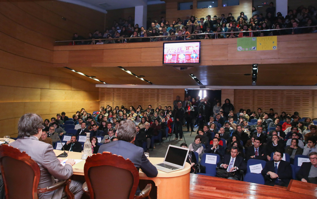 Con una gran asistencia de público se realizó el lunes pasado un debate entre los candidatos a decano de la Facultad. La instancia, organizada por el Centro de Estudiantes (CED) y la Asociación de Funcionarios (AFUCh) tuvo como objetivo dar a conocer, en términos generales, los lineamientos y propuestas cada candidato a decano.