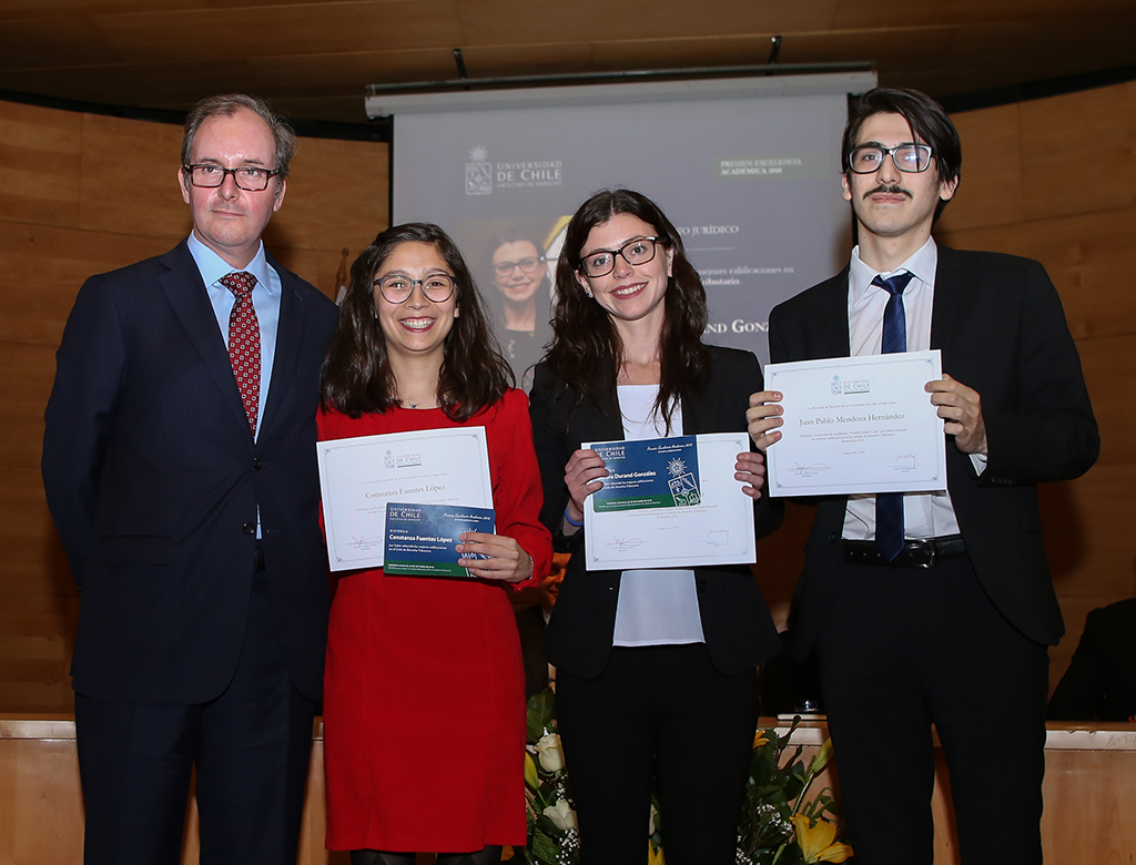 Hicieron entrega de estos premios la Subdirectora de Escuela de Pregrado, Ximena Insunza Corvalán, y los directores de Departamento, Raúl Montero López (Derecho Procesal) y Enrique Navarro Beltrán (Derecho Público).