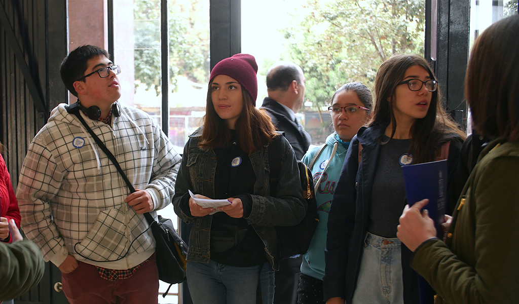 Bajo la coordinación de la Dirección de Extensión, un grupo de monitores compuesto por estudiantes y funcionarios tuvo la tarea de recibir a los visitantes, para luego guiarlos por las aulas, oficinas y pasillos del principal edificio de la Facultad, construido entre 1934 y 1938 bajo el decanato de Arturo Alessandri Rodríguez y diseñado por el reconocido arquitecto Juan Martínez.