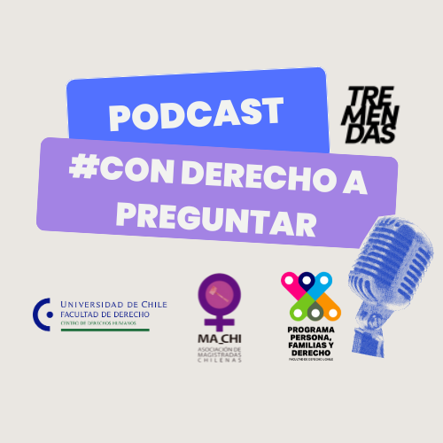 Podcast "#Con derecho a preguntar"Programa en el que niñas y adolescentes toman el micrófono y conversan con mujeres del mundo del Derecho, sus trayectorias, desafíos y sobre el Derecho y los derechos. Iniciativa de la Asociación de Magistradas Chilenas, el Centro de Derechos Humanos, el Centro de Derechos Humanos y el Programa Personas, Familias y Derecho de la Facultad de Derecho de la Universidad de Chile. Apoyado por Fundación Tremendas.