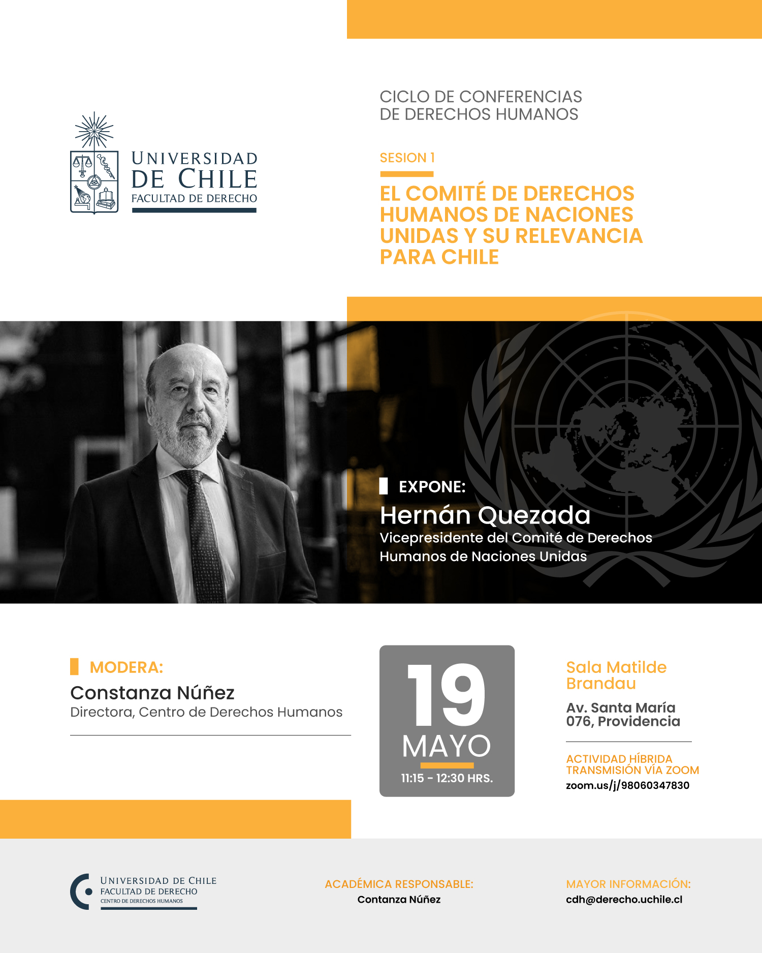 Ciclo de conferencias de derechos humanos. Sesión 1 - Hernán Quezada. "El Comité de Derechos Humanos de Naciones Unidas y su relevancia para Chile". |