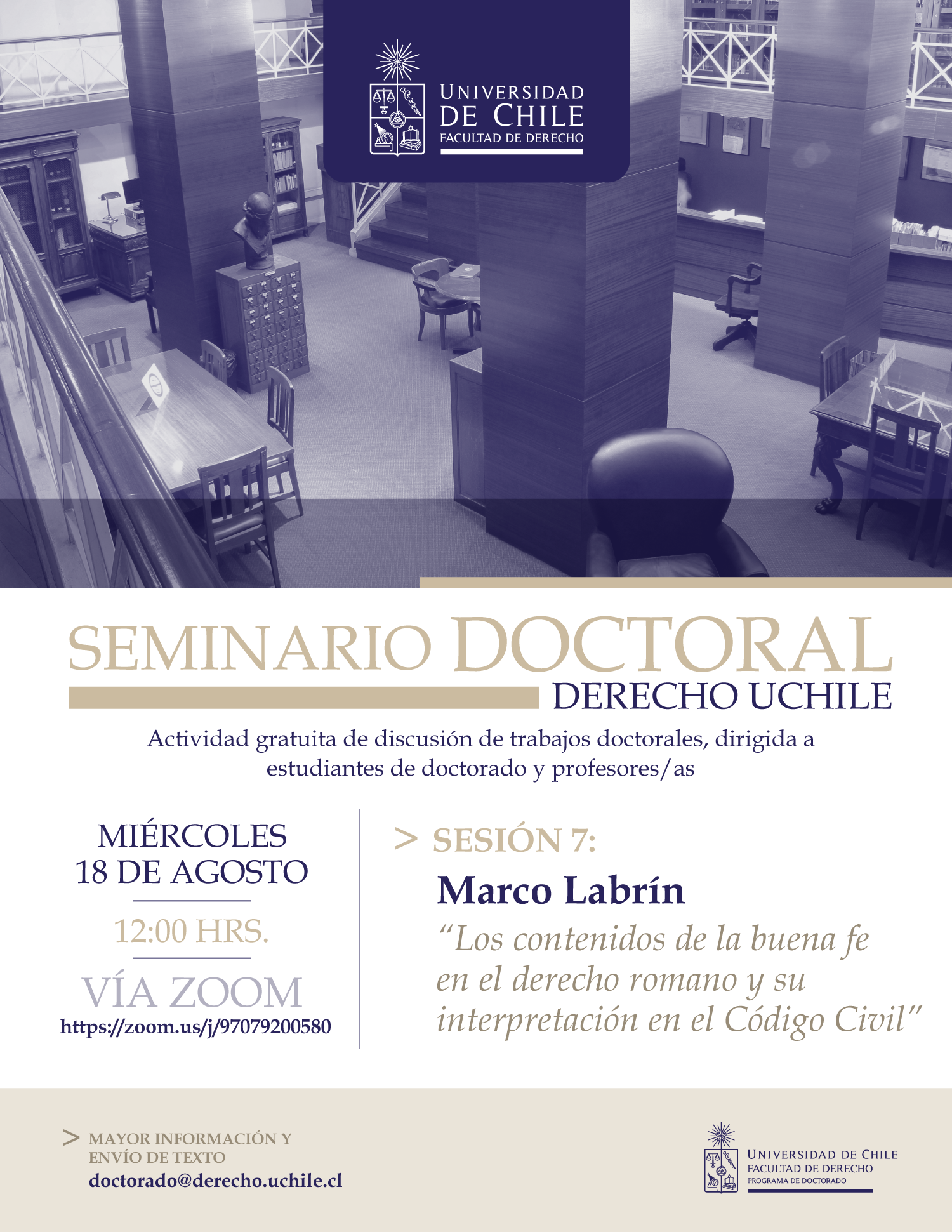 Vía Zoom: https://zoom.us/j/97079200580 - Mayor información y envío de texto: doctorado@derecho.uchile.cl