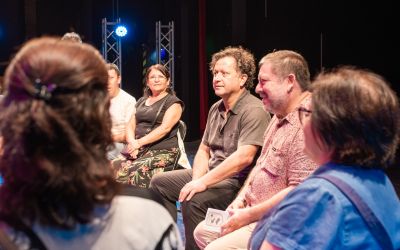 La jornada finalizó en el Teatro del Centro Cultural Municipal de Puente Alto, donde entre las 19:00 y 21:00 horas se realizó la Charla con teatristas locales, un conversatorio con el director y actor del Teatro Nacional Chileno (TNCH), Cristian Keim y Daniel Alcaíno que convocó a artistas del territorio a participar del diálogo interdisciplinario, propiciando el intercambio de experiencias en torno al quehacer teatral.