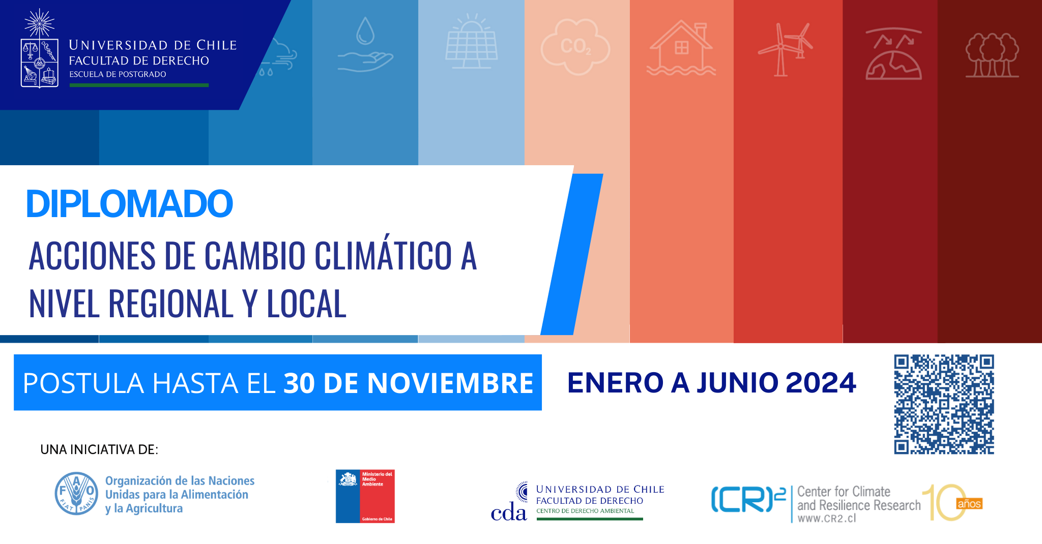 El diplomado "Acciones de Cambio Climático a nivel regional y local" se enmarco en el proyecto "Acción, Territorio y Clima", ejecutado por el Ministerio del Medio Ambiente y la Organización de las Naciones Unidas para la Alimentación y la Agricultura (FAO), con el fin de fortalecer las capacidades técnicas e institucionales a nivel subnacional y local en Chile para la efectiva implementación de la Ley Marco de Cambio Climático y sus instrumentos relacionados.