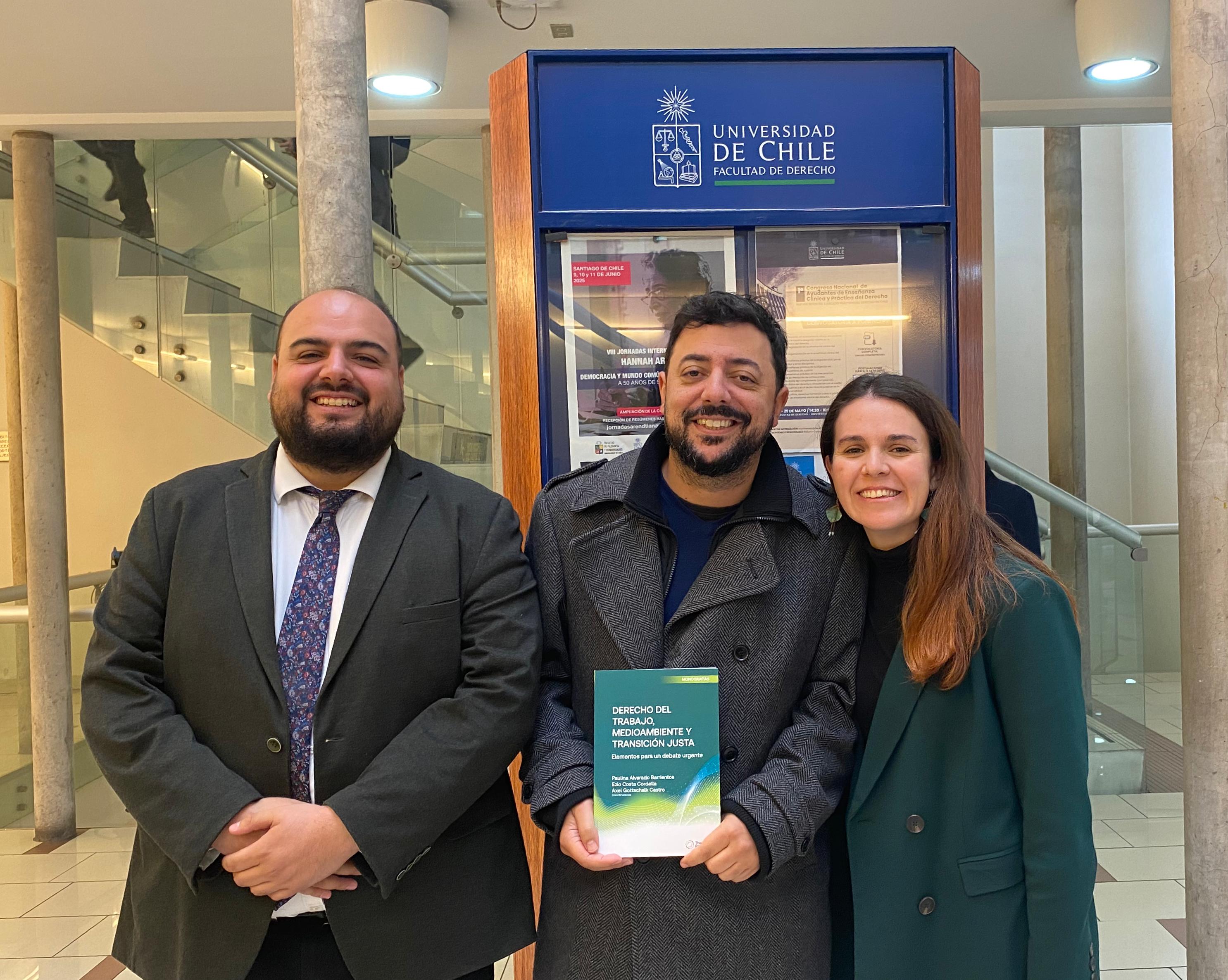 El miércoles 7 de mayo de 2025, tuvo lugar la presentación del libro «Derecho del Trabajo, Medioambiente y Transición Justa: Elementos para un Debate Urgente» (Thomson Reuters, 2025), coordinado por Paulina Alvarado Barrientos, el Dr. Ezio Costa Cordella (subdirector del Centro de Derecho Ambiental) y Axel Gottschalk Castro, en el Auditorio Alessandri de la Facultad de Derecho de la Universidad de Chile. La presentación fue organizada por el Centro de Derecho Ambiental, el Departamento de Derecho Económico y el CFG «El Sindicato frente a los Desafíos de Nuestro Tiempo».