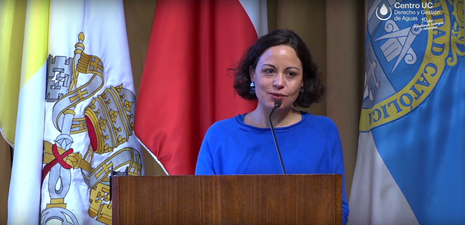 La investigadora del Centro de Derecho Ambiental expuso el problema de que la evaluación de los recursos hídricos compartidos en nuestro país está sólo al nivel de un instructivo. Destacó la multidimensionalidad de las aguas transfronterizas, mencionando la dimensión ecológica, socioeconómica y geopolítica de ellas.