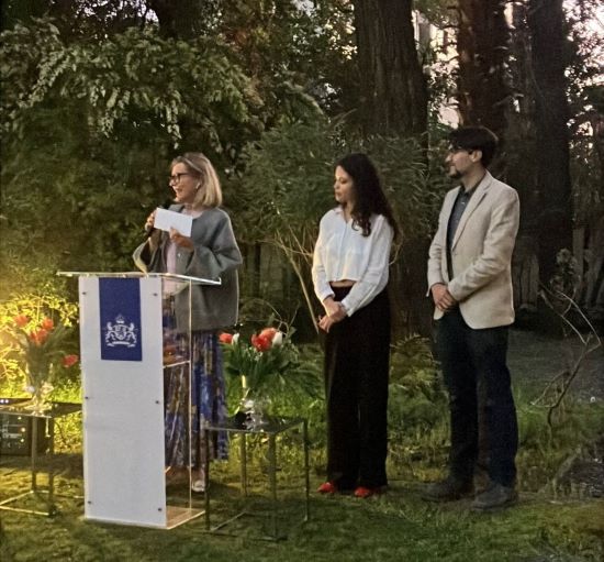 La ceremonia de premiación, realizada el pasado 15 de septiembre en la antigua embajada de Países Bajos en Chile, contó con la presencia de la embajadora Elke Merks, miembros de la embajada: Lieselotte Ly y René Borghouts, la profesora Paula Cortés González, y los estudiantes ayudantes Antonio Urrutia De la Barra y Martina Pavletich Blanco.