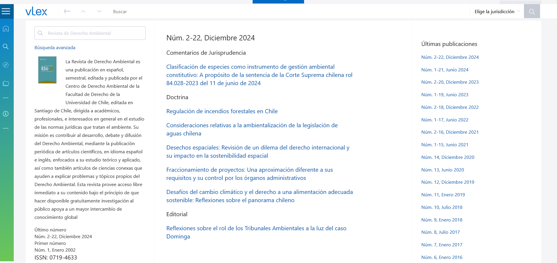 El Centro de Derecho Ambiental (CDA) de la Facultad de Derecho de la Universidad de Chile y VLex han celebrado un acuerdo de colaboración para que las ediciones pasadas y futuras de la Revista de Derecho Ambiental se encuentre disponible para usuarios de esta base de datos, con la finalidad de potenciar el alcance global del contenido académico publicado desde el 2002.