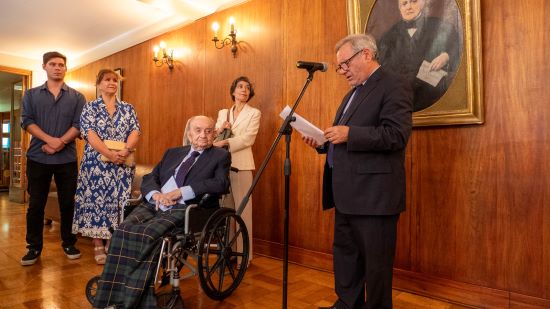 “Celebramos su dilatada vida, pero también —más allá de nuestras particulares preferencias y eventuales diferencias de ideas, pues en esta casa de estudios se practica y se vive el pluralismo de verdad— su tarea de servicio público, que comprende el trabajo en el aparato del Estado, la docencia, la acción parlamentaria, la diplomacia, la cultura y la reflexión histórica”, afirmó.