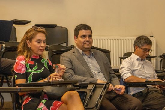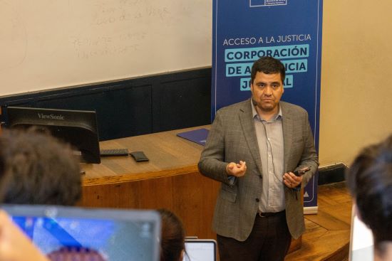 En la actividad, expuso en primer lugar, el Director General de la Corporación, Rodrigo Mora Ortega y luego Paula Torres, abogada de la Dirección Metropolitana Norte de la misma institución, acompañados por el profesor de la cátedra y Director de Asuntos Estudiantiles, Rubén Burgos Acuña, quien también es miembro del Consejo Directivo de la CAJ, en representación del Decano de la Facultad.